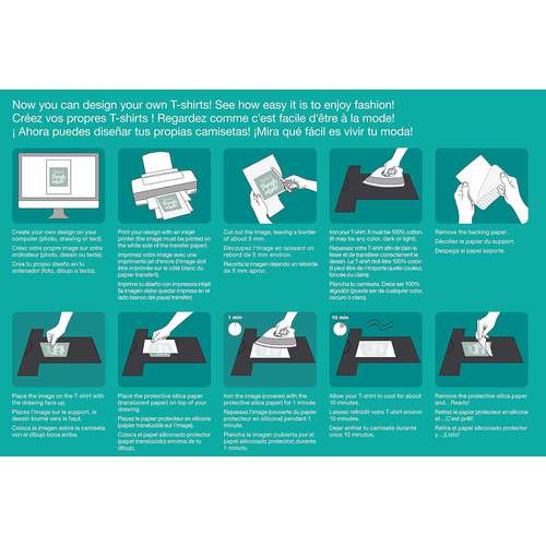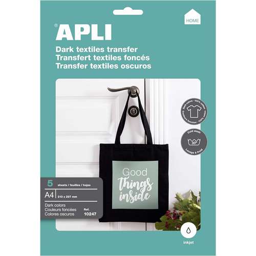 La pellicola di trasferimento APLI di alta qualità è ideale per personalizzare t-shirt e tessuti colorati. La carta transfer Apli è adatta a tutti i tessuti di cotone colorati, come borse, grembiuli, jeans, teli mare, biancheria intima, bavaglini, ecc. I motivi vengono stampa...