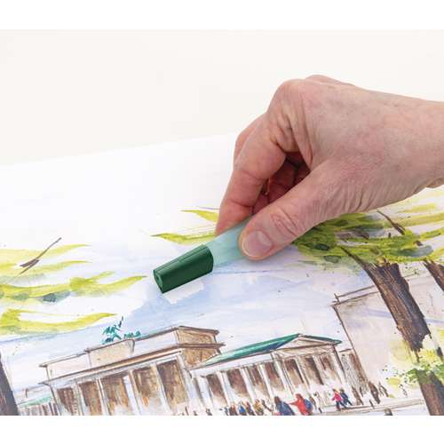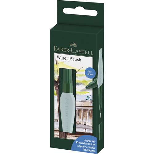 Faber - Castell Art & Graphic Water Brush è un pennello per acquerelli speciale, dotato di serbatoio per l'acqua. La fuoriuscita dell'acqua è facilmente regolabila attraverso la pressione sul serbatoio. Basta svitare il pennello, riempirlo di acqua, riavvitare la punta e iniziare a disegnare!