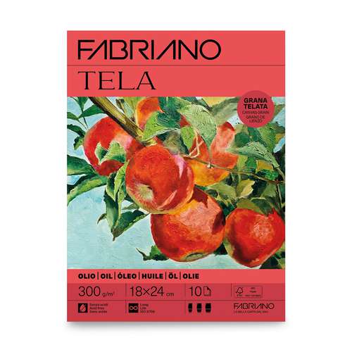 La carta per pittura ad olio Tela Fabriano è trattata in massa e in superficie per garantire un assorbimento ideale dei colori ad olio. Ha una grammatura di 300 g/mq, formato 50 x 65 cm. L'assenza di acidi garantisce l'inalterabilità nel tempo della carta. La superficie telata ottenuta attraverso un processo di goffratura permette di creare degli effetti pittorici simili alla tela di lino. È il supporto ideale per la pittura ad olio. Prezzo per foglio.