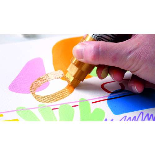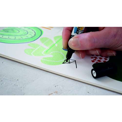 Ideale completamento della linea di colori acrilici Triton Acrylic, questo marker sii adatta a quasi tutte le superfici, come, ad esempio, tela, cartone, carta, pietra e metallo, è disponibile con punta tonda o a cuneo da 1-4 e da 15 mm, in numerose tonalità .