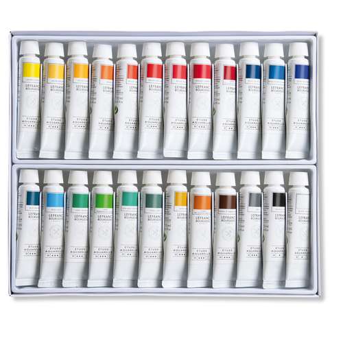 I set di Lefranc & Bourgeois contengono acquerelli in qualità studio. Sono perfetti per chi è alle prime armi con la pittura ad acquerello. Questi acquerelli luminosi si prestano molto bene alla miscelazione e convincono per l'intensità del colore e trasparenza.