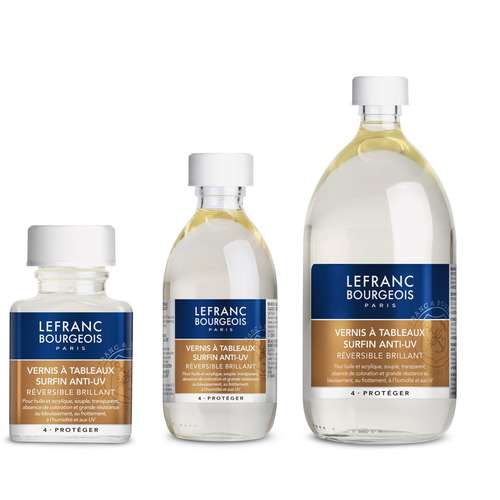 La vernice finale sopraffina Lefranc & Bourgeois, disponibile in 3 diversi formati, è adatta per colori ad olio e acrilici.