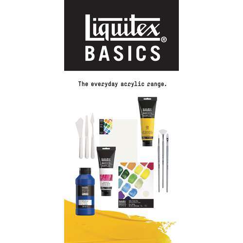 I colori acrilici Basics offrono un rapporto qualità -prezzo straordinario con l'abituale qualità Liquitex. Sono disponibili in tubetti da 118 ml e 250 ml, in flaconi da 400 ml e in barattoli da 946 ml.