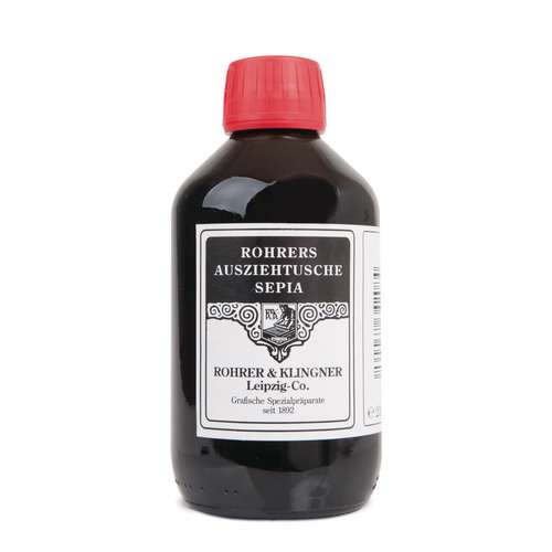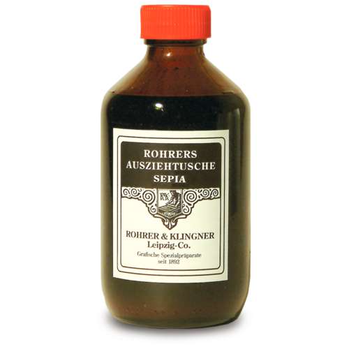 Questo inchiostro di china Rogher & Klingner è molto simile alla tonalità seppia organica della secrezione della seppia. Questa tonalità fredda, scura, di colore bruno-grigio profondo è molto apprezzata. L'inchiostro seppia asciuga anche in modo resistente, può essere diluito con acqua distillata ed è quindi ideale per la tonalità di superficie e per dilavaggi con il pennello. Si possono ottenere effetti di chiaro-scuro molto efficaci. L'inchiostro seppia ROHRER & KLINGNER è in gran parte resistente alla luce.
