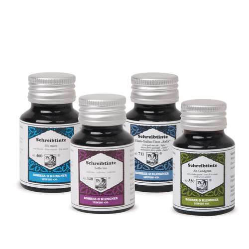 Il colore dell'inchiostro ferrogallico diventa più profondo dopo la scrittura grazie all'ossidazione dell'aria; la scrittura è permanente. Per creare nuove tonalità, gli inchiostri per scrittura Rohrer & Klingner possono essere mescolati tra loro.