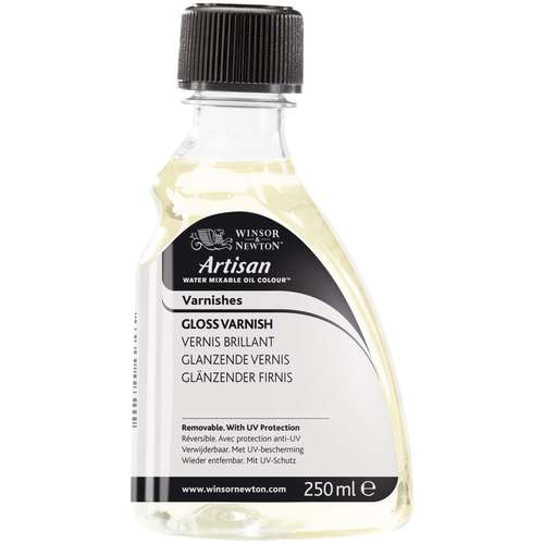 Vernice lucida Artisan Winsor & Newton a base d’acqua senza solventi nocivi. Proteggono i dipinti finiti dalla sporcizia e dall’unto e una volta essiccata possono essere rimosse con lo sverniciatore Artisan. Disponibile in pratici flaconi da 75 ml, con etichetta in tedesco/frances...